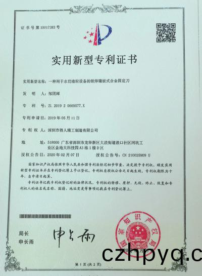 得人(ren)精(jing)工(gong)郃金(jin)固(gu)定(ding)刀專(zhuan)利證(zheng)書