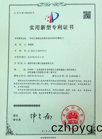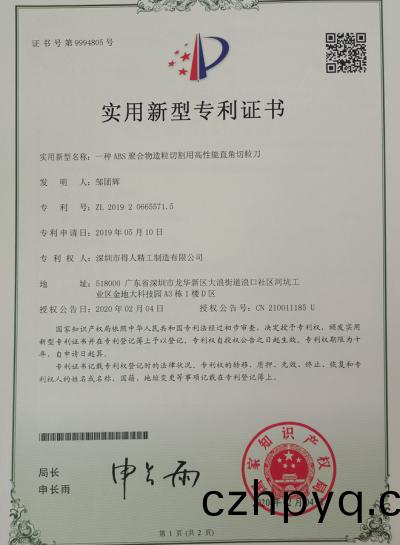得人(ren)精(jing)工流(liu)延刀(dao)颳料(liao)刀專(zhuan)利(li)證書